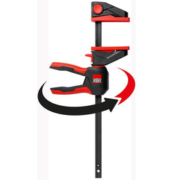 The Bessey® 360-Degree One-Hand Trigger Clamp features a patent-pending handle that rotates 360° around the rail. The twelve-detent rotation of the handle position improves both clamping (or spreading) ergonomics and tool versatility by allowing one to position the handle optimally for each job. The ergonomically shaped composite handle with a trigger makes it easy to achieve maximum clamping force with enhanced comfort and one-handed operation.