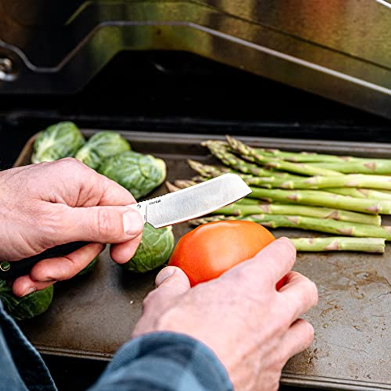 - 7Cr17MoV stainless steel blade offers good edge retention, toughness, and wear resistance; satin polished for a traditional look