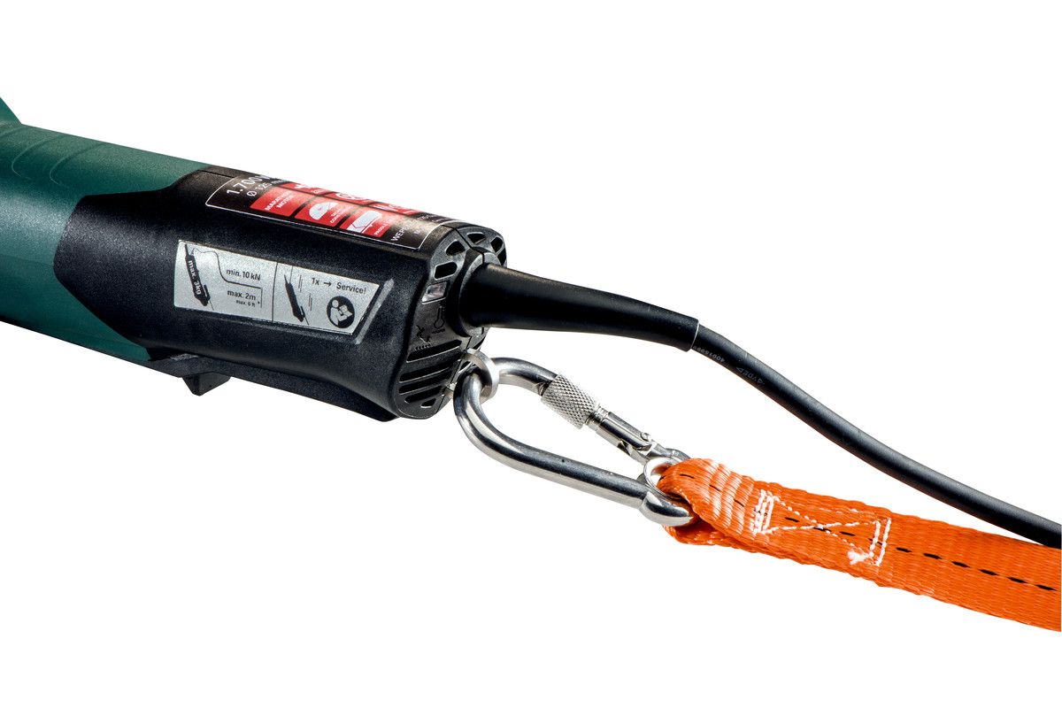 • Steel ring for carabiner to secure the angle grinder from falling when working at great heights