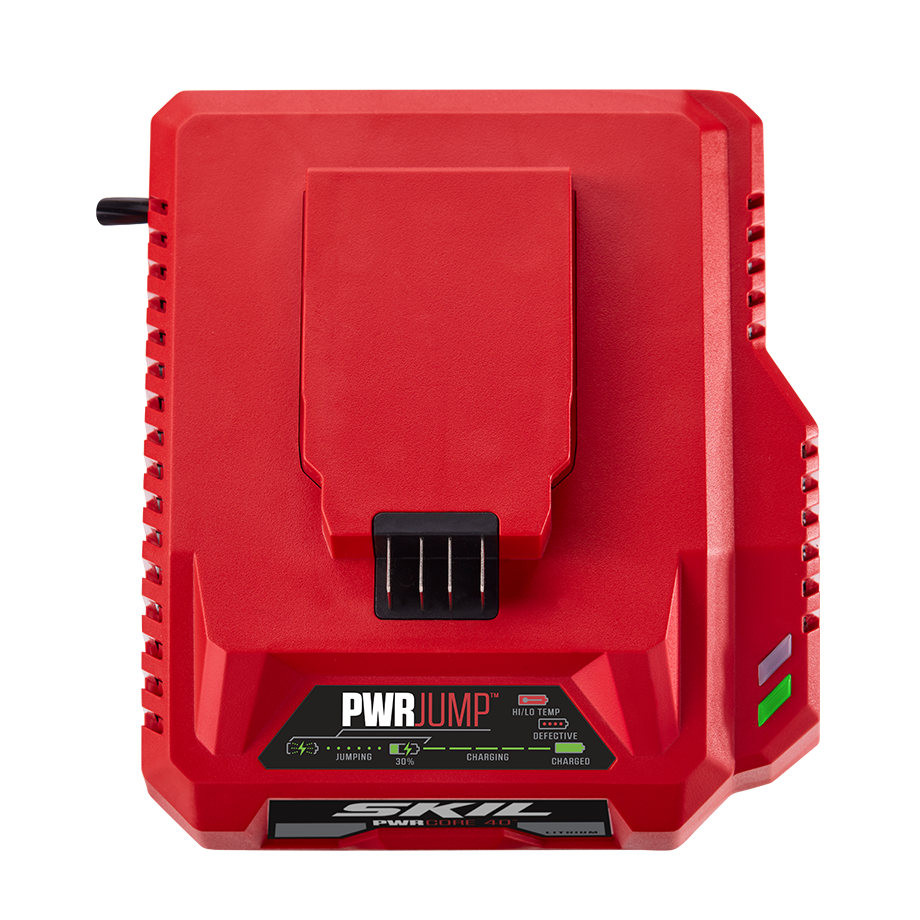 Industry-leading innovation from SKIL charges faster and more efficiently than ever. Auto PWR JUMP™ charges the battery from zero to 30% in just 15 minutes, and fully charges within 60 minutes (based on 2.5Ah battery). The charger manages each cell in the battery to control temperature and maximize battery life. Fueled by the performance and innovation of the SKIL PWRCORE 40™ System, the Auto PWR JUMP™40 Volt Charger will ensure your tools are ready to go.